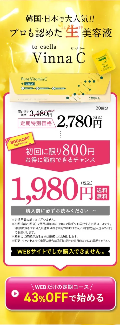 結論として、Vinna CをWEBで最もお得かつ確実に購入するには、公式サイトの定期コースキャンペーンを利用するのが最もおすすめです!