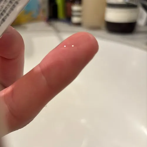 美容液を手のひらに出してみると、少しとろみのある透明なテクスチャーです。