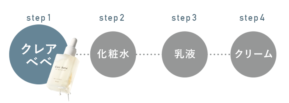 最初にクレアべべを使用することで、潤いや美容成分を「導き」「浸透」しやすいお肌に。いつものスキンケアを格上げし、ワンランク上のお手入れへ。