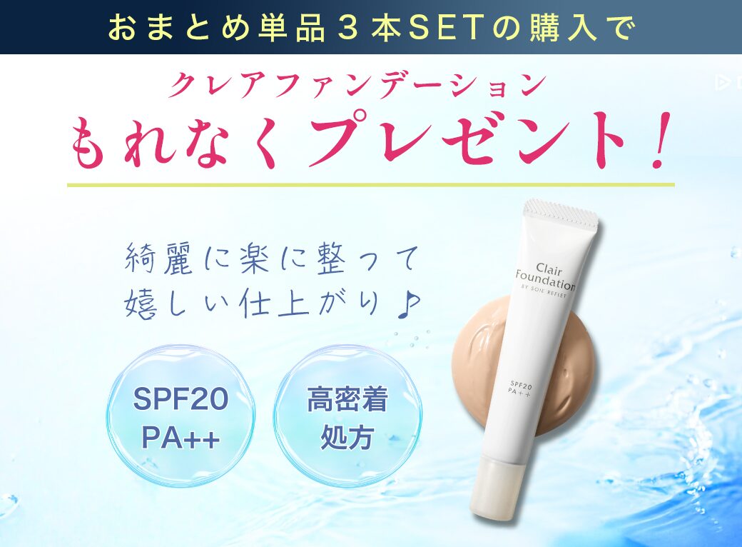 「おまとめ単品3本SET」1注文毎にクリアファンデーションを1本プレゼントいたします。