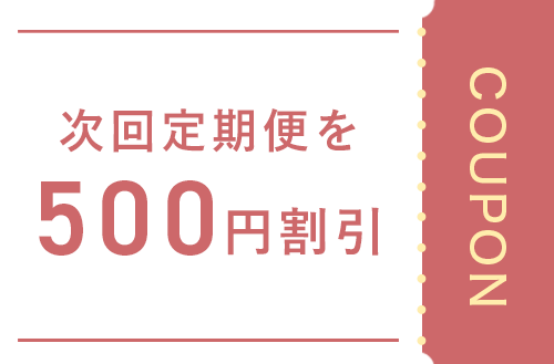 次回定期便に500円割引クーポンが適用されるクーポンです。このクーポンは1回のお届けにつき1枚のみが適用されます。申請のタイミングによっては次々回お届け分に適用となる場合もあります。別クーポンと併用可能です。